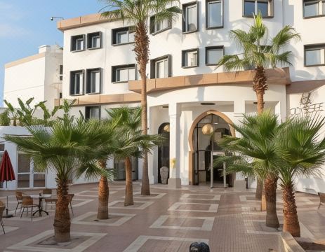 Voici mon résumé pour trois nuits dans cet hôtel. Arrivee vers 14h : premier contact le parking pas de place on nous demande de se garer à côté sur un parking payant. Ca commence bien. Deuxieme contact avec le réceptionniste qui est vraiment antipathique et non chalant pas de sourire. Remise des clés vers 14h30 nous arrivons dans la chambre il faut mettre un coup de pied dans la porte pour rentrer chambre 414 ou 416 nous rentrons dans la chambre première impression assez bonne lit doubles avec un canapé vue sur mer, la salle de bain un peu vieillotte mais c'est propre. Direction la piscine parfaite elle est progressive avec des transats en bon état et des serviettes mise à disposition. Le soir première sortie en voiture, pour rentrer à l' hôtel de nouveau pas de place sur le parking, pas de place sur le parking payant nous devons chercher par nous-même une place de parking à 1 km de l'hôtel, avec une personne âgée ce n'est pas évident. Direction la reception on leur fait part de notre mécontentement le problème est bien connu mais aucune solution il s'en foutent pourtants sur le descriptif de l'hôtel il est bien indiqué qu'un parking est mis à disposition: menteur.Première nuit et premier petit déjeuner, quelle déception pas d'eau , pas de lait, pas de céréales,pas de yaourt pas de fruits Comment faire avec des enfants? la seule chose à volonté les crudités les oignons des choux des concombres la salade une dizaine de sauce avec aucune étiquette, un grille-pain qui réchauffe mais qui ne grille pas. Heuresement il y a un cuisinier qui fait des omelettes et une cuisinière qui fait des crêpes marocaines mais une par une donc il faut patienter pratiquement 10 minutes pour avoir une crêpe. On décide de rester sur sur cette deuxième journée à l'hôtel le midi interdit d'apporter son manger autour de la piscine , on demande la carte du snack , reponse : il n'est pas ouvert. On demande la carte du restaurant réponse il n'y a pas de carte il faut voir directement avec le cuisinier. il n'y a pas de carte que c'est en fonction du menu du jour. Ok on va prendre le menu du jour viande haché et salade composée (3 minuscules boulettes de viandes hachée 90 dirhams et la salade 60 dirhams) le tout dégueulasse. Sinon le ménage des chambres est fait avant 14h. Il y a pres de la piscine un babyfoot et table de ping pong. la salle de sport est tbienmais ouvre seulem3nt de 10h a 18h, c'est trop court. donc au final nous ne reviendrons pas.