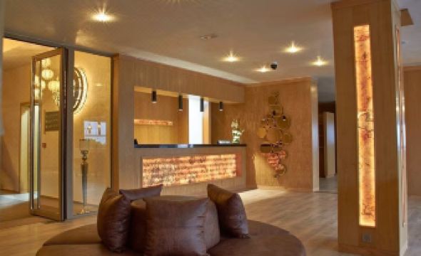 Mabrouk Hotel and Suites (Adult Only) is a 4-star hotel in Agadir, located a 5-minute drive from Agadir Beach and Souk El Had, and 1.6 mi (2.6 km) from Agadir Marina. The hotel offers 40 guestrooms with minibars, flat-screen TVs, private bathrooms featuring rainfall showerheads and complimentary toiletries, safes, desks, and phones with free local calls. Amenities include free Wi-Fi (in rooms and communal areas), a 24-hour front desk with multilingual staff, concierge services, dry cleaning/laundry services, an outdoor pool, a terrace, a garden, a poolside bar, and two bars/lounges. Dining options include a restaurant serving international cuisine, a coffee shop/cafe, and limited-hour room service. Free self-parking is available, and a paid airport shuttle service is offered. Nearby attractions include Agadir Open Air Theatre, Royal Palace, Agadir Amazigh Heritage Museum, Stade Al Inbiaate, Vallee de Oiseaux, Casino Le Mirage, Agadir Beach, Club Royal de Tennis, Shems Casino, Agadir Synagogue, St. Anne's Church, Jardin de Olhao, Lebanon Mosque, Mohamed V Mosque, and Agadir Aerial Tramway. Al Massira Airport (AGA) is 29.9 km / 18.6 mi away. Please note: This property is adults-only. Poolside entertainment with loud music continues until 2:00 AM, and some rooms may be affected by noise.