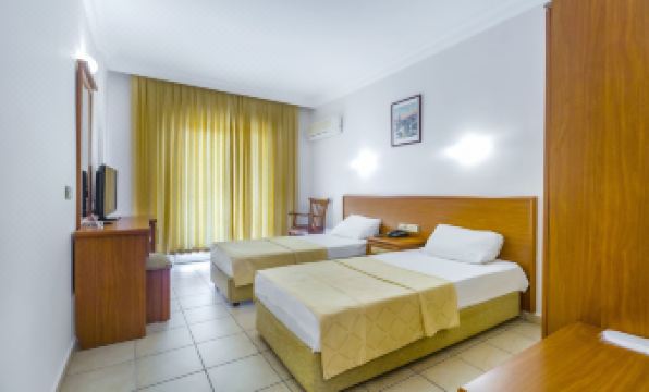 Nice hotel 7-10 mins from the beach which is in line with the price of the accommodation. ******* has it listed as a 4 star hotel, but it is 3 star as stated in the hotel. Free good wifi throughout the hotel and in the room, but you have to re-enter login and password on all devices every 2-3 days. Good Turkish breakfast - buffet. The rooms are tired, but the bed is comfortable, everything works: air conditioning, small fridge, sanitary equipment. There was a problem with cleaning: for the first 8 days not once cleaned, even after two requests addressed directly to the cleaning staff. Cleaning was improved only after I raised this issue at the reception. Knowledge of English is very basic or absent - use google translator to translate into Turkish.