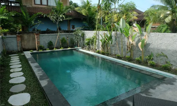 Very friendly family-run guest house in the southern part of Ubud near very nice restaurants and Monkey Forest. Very quiet and clean rooms with kitchen (cleanliness of kitchenware depends on previous guests...), Fridge, AC and bathroom with shower and bathtub. Tasty breakfast served to your room every day. Nice pool with clean water. The owners also provide taxi and tour organisation.