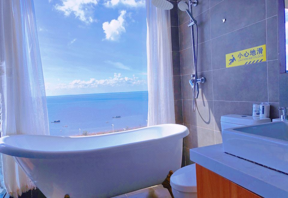 公寓裝修風格現代簡約,細節處處用心。床品柔軟親膚,衞浴乾濕分離,廚房設備齊全(連咖啡機都有!),完全像在家一樣方便。最喜歡的是超大浴缸,邊泡澡邊看海,度假感拉滿~