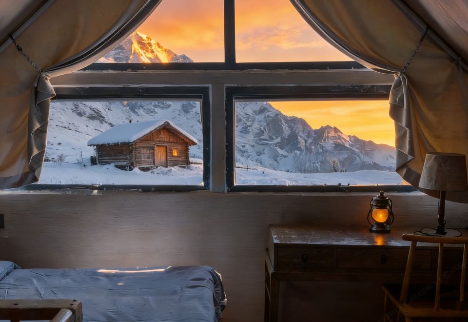 Harden - Sunshine Golden Mountain Twin Room (Large Snow Mountain Window + Washing Machine + Floor Heating)