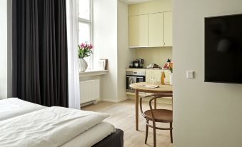 Fremragende lejligheder. Virkelig god beliggenhed tæt på alt, men alligevel er der fredeligt og roligt. Værelset vi havde var i perfekt stand.