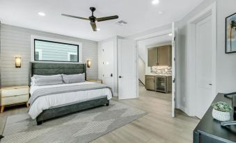 -Bedroom with a king bed and en suite full bathAbout pets:Pets allowed: dogs (limit 1 total).About checkOut:Check out before 11:00 AM.About children:Children allowed: ages 0-17.About customRules:Please rinse sand off prior to entering the house or pool. We have a great outdoor shower for your convenience..No loud music after 9pm,No glass on the pool deck.About checkIn:Check in after 4:00 PM.About smoking:Smoking is not permitted.About minBookingAge:Minimum age to rent: 18.About events:No events allowed.