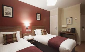 We were lucky to have a family room which was quite spacious and the bed was comfy. The room was situated to the rear of the hotel so we didn't hear any noise from the bar. Narrow staircase up to rooms with awkward doors especially when trying to get a suitcase to the room. No help offered from staff. The water pressure in the shower was very poor. The info folders in the room are at least 5 years out of date. Breakfast was ok but not a lot of choice. It felt like a pub with rooms, with the emphasis on the pub rather than the accommodation. Rooms very expensive for an average hotel. It was ok for 1 night but wouldn't stay again.