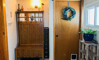 Near the bathroom door is a staircase leading up to the small attic bedroom with two twin beds. This room can be slower to change temperature than the rest of the house so there are fans and a space heater up there to assist. Please do not leave the heater running when the room is not in use. The shade can be drawn to help maintain desired temperatures upstairs.