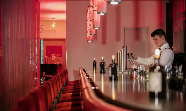 Du kan nyde lækre cocktails og øl i stedets bar.