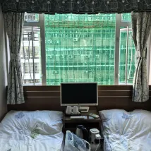 Very well situated, clean and affordable in an expensive Hong Kong. If you are arriving by air, take the A21 bus from the airport to Tsim Sha Tsui district. Get off at the Cameron Road stop (about 14 stops from the airport). This will place you on Nathan Road, the main drag for Kowloon. Stay on the same side of the road, walk to Haiphong Road. Turn onto Haiphong Road and, a few steps in, you will see the entrance for Haiphong Mansion. Enter. Take the odd-numbered elevator to the 9th floor. Exit elevator, turn right, then turn right and you will be there. (To help you further: There’s a jewelers shop on the corner of Nathan Road and Haiphong road. Also Haiphong Road is across from the Citibank).