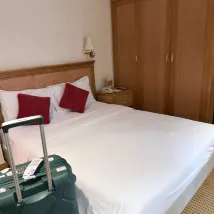However, cleanliness needs improvement. The carpet felt old, the bathroom had a musty smell, and the bed was very firm—too uncomfortable for my taste. The hotel is also quite dated and could use a renovation.
