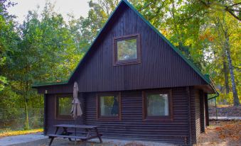 Child friendly holiday village "Kemp Stříbrný rybník". 25 houses in the resort. In the district of Malšova Lhota, 5 km from the centre of Hradec Králové, along the wooded area, on the lake. For shared use: property. Table tennis, boccia (extra), beach volleyball, arbour, barbecue, fireplace, children's playground, bathing jetty. In the complex: reception, restaurant, bar, bistro, playroom, washing machine (for shared use, extra), bicycle rental. Parking (extra) on the premises. Bus stop "Stříbrný rybník" 700 m, railway station "Blešno" 5 km, sandy beach, bathing lake 50 m. Sports harbour, minigolf, sports centre, walking paths from the house, cycle lane, fishing possibilities 50 m. Nearby attractions: Adventure park Firmsport, letní kino, tutistický vláček do lesa, Stezka siluet, Rytířské hradiště 3 km, Park Na Větvi 3 km, Obory se zvěří 4.2 km, Obří akvárium, Botanická zahrada 4.7 km. Hiking paths: Pohádková, Vodnická stezka 6 km, Planetárium, planetární stezka 8.4 km, Zoopark Stěžery, Rozhledna Milíř 15 km. Please note: entertainment in the season. Suitable for families. Fishing [permit required]. The photograph shows a typical example. 5-room cottage. Dining room. Living/sleeping room with 2 beds, 1 double sofabed and satellite TV. 1 room with 2 beds. Kitchen (2 ceramic glass hob hotplates, kettle, microwave). Shower, sep. WC. Heating. Upper floor: 1 room with 2 beds. 1 room with 4 beds. Terrace furniture. Facilities: Internet (WiFi, free). Maximum 2 pets/ dogs allowed.