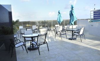 The recreation area offers a rooftop infinity pool, sun loungers, tables and views of the beaches of Manaíra (left), Tambaú and Cabo Branco (right), 300 meters from the Tamandaré bust.