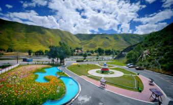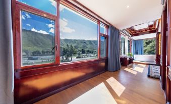 房間很大,設施設備齊全,店長特別優秀,店裡小帥哥也是特別熱情,會幫忙拿行李,每個房間都能看見山景,酒店前面有個花園,周圍羣山環繞,門前還有一個馬場,小娃娃可以騎馬,還有小河,大家可以下河踩水,很棒的環境,特別好的服務,對了廚房大廚弄的川菜也特別好吃,總之,很棒的選擇。