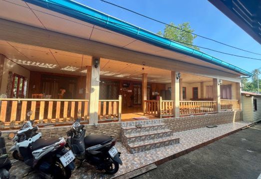Гестхаус находиться непосредственно в деревне и вы постоянно окружены местными жителями, что привносит дополнительный колорит! При заселении ждал около 30 мин, кого- либо из администрации. В итоге появилась особа лет 12-14, дала ключи от номера, площадью квадратов 10-12 (хотя бронировал 20 метровый номер). Спорить бесполезно, по английски не понимает! Заселился часов в 17, попросил байк, те что стояли на стоянке, ни один не завёлся, в итоге пригнала со стороны под убитый за 250 бат. На следующий день припарковал байк часов в 16 и хотел сдать ключи, но мадам не нашёл ( хорошо что заплатил за сутки). На следующий день, часов в 11 мадам появилась, отдал ключи, попросила заплатить за вторые сутки аренды (хотя у меня стоял другой байк), отказал, не скандалила. В итоге за 3 суток видел эту девченку раз 5-6 мельком. Завтраки отдельная тема: 2 сосиски, жареное яйцо, пластинка лука и помидора и так 3 дня! Тарелка появлялась неизвестно когда, накрытая пищевой плёнкой! Ну и купаться на местном пляже вместе с деревенскими фикалиями и другими отходами, то ещё удовольствие! Поэтому категорически не рекомендую!!!