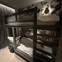 I forældre-barn-værelset har børnene et lille værelse med køjesenge.
