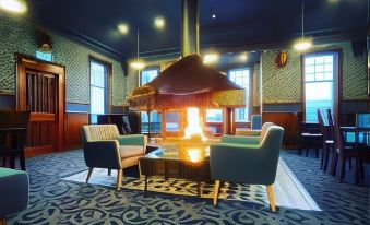 The unique Cocktail Bar features an open log fire and a selection of over 100 malt whiskeys.