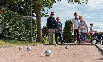 Sehr nette Campingplatzbetreiber, sehr hilfsbereit und sehr flexibel. Es gibt einen kleinen Shop mit einer überschaubaren Auswahl. Der Platz und die sanitären Anlagen sind neu und sehr sauber. Es gibt einen Brötchenservice (und die leckeren dän. süßen Backwaren) von einer leckeren Bäckerei im Ort über die Rezeption. Es kommen verschiedene Imbissbetreiber mit ihren Angeboten zum Abendbrot an manchen Tagen auf den Platz, wenn man nicht selbst kochen möchte. Wir waren 11 Tage zu viert in einer kleinen Blockhütte und es war herrlich - alles da was man braucht. Zum Meer sind es nur 1 Fußminute. Der Strand ist steinig (Badeschuhe empfohlen). Die Spazierwege sind landschaftlich schön und allgemein ist die Gegend sehr ruhig.