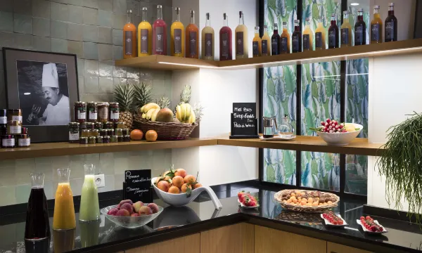 Morgenbuffeten serveres i det elegante morgenmadslokale, indrettet i nuancer af fløde og chokolade. Om aftenen kan gæsterne slappe af i en af loungbarens lænestole med en cocktail fra den store menu.
