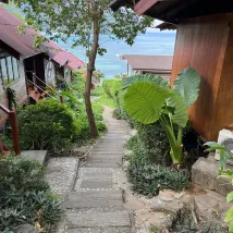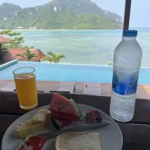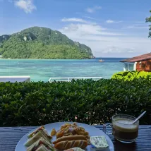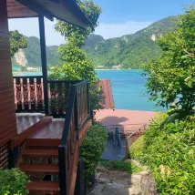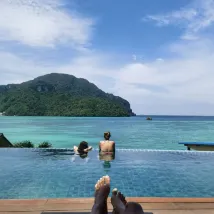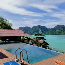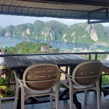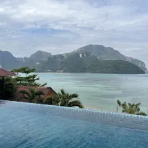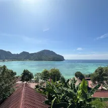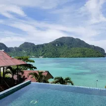 The service for this hotel was amazing. Our luggage was collected and taken to the hotel from the port and the manager/lady at reception was so kind, helpful and enthusiastic and made us feel really welcome. The hotel location is a little far despite being a small island and the hill is steep but it didn’t stop us from going out or enjoying phi phi. It made it feel more secluded if that’s what you are after and the view from the pool of the beach was amazing with a few nice quiet bars around, just not near the center. The room itself was quite disappointing, the smell was bad, there was a massive cockroach on its back in the bathroom and when the shower was on the light in the bathroom flickered.