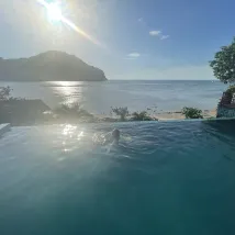 Faciliteter og beliggenhed: Hotellet kan prale af en fantastisk udsigt over øen, og infinity-poolen er fantastisk til billeder og afslapning. Men at nå spisepladsen involverer at gå op ad mange trapper, hvilket kan være en udfordring for nogle gæster. Hotellets beliggenhed var mindre end ideel. Det omkringliggende område er ubebygget, med affald nær gangstierne og et par mørke gyder, der føltes utrygge, især for min kæreste, når jeg var alene.
