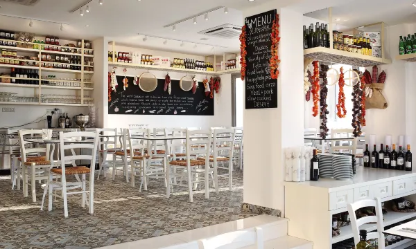 Gæsterne kan spise frokost og aftensmad i den traditionelle græske taverna eller hovedrestauranten. Der er også en hovedbar og en poolbar. Der serveres dagligt en certificeret cypriotisk morgenmad. Importeret kvalitetsalkohol er inkluderet i Ultra All Inclusive-pakken.