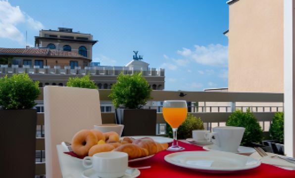 Amazing hotel with great location. Right infront of Piazza Venezia, walking distance for every major attraction. Secure area with lots of great shopping, local amenities, express groceries, metro, taxis and electric scooters.