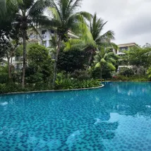 Прекрасный номер, чистый, просторный, современный дизайн, со всем необходимым, включая большой холодильник и стиральную машину. Сам комплекс зеленый, уютный, большой бассейн (нужна шапочка для плавания). Если знаете китайский язык - проблем никаких. До моря на такси 5 мин, пешком полчаса.