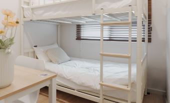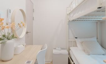 Отличный отель для тех, кто хочет прочувствовать вайб корейских дорам, потому что по винтовой лестнице холла можно подняться на крышу (хотите зарядку делайте, хотите - белье сушите). В номере - кровать и туалетный столик с зеркалом, есть универсальная зарядка и вешалки. В общем холле - бесплатная вода (холодная и горячая, можно чай попить и лапшу заварить). Есть еще стиральные машины и микроволновка, но я не пользовалась, так как приходила в отель только спать. Постельное белье - отличное.
