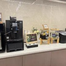 特別好,前台有牛奶和5種咖啡,服務也好,