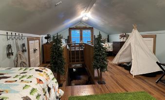 Large front yard. Gas grill available for use & wood provided for fire pits. Multiple areas to enjoy friends and family in peaceful outdoor setting. Hiking, rafting, golfing & biking areas nearby.About pets:Pets allowed: dogs (limit 2 total).2-3 well mannered and behaved dogs.About checkOut:Check out before 11:00 AM.About children:Children allowed: ages 0-17.Teepee for story telling & large yard for games..About customRules:No garbage is to be left at the cabin as there is no garbage collection in this area. Directions for disposal are sent w/house i.Will leave orange sticker for garbage bag to go to dump.About checkIn:Check in after 4:00 PM.About smoking:Smoking is not permitted.Smoking outdoors only.About minBookingAge:Minimum age to rent: 25.About events:No events allowed.