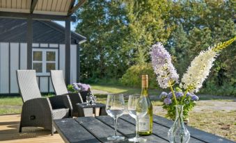 Holiday village, built in 1990. 55 m from the sea. Private: natural state property 100 m2. Terrace (15 m2). Grocery 300 m. Golf course 2.5 km. The owner does not accept any youth groups. "Bergit" - 55m from the sea", 2-room house 70 m2. Object suitable for 6 adults. Living room with TV and radio. 1 room with 1 double bed. 1 room with 2 x 2 bunk beds. Kitchen (oven, dishwasher, 4 ceramic glass hob hotplates, microwave, freezer). Shower/WC. Terrace 10 m2, roofed. Facilities: Internet (WiFi). Please note: non-smokers only. 376-37719