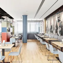 A new and modern hotel by the subway line U4, easy to take public transit to the historical part of the city, a lot of restaurants and a super market nearby. The breakfast buffet is very good. The rooms are soundproof but the room door is heavy as a result you would hear a loud sound if your next door neighbor was not mindful about it. There is no kettle in the room so you will have to borrow one from the reception desk if you are lucky.