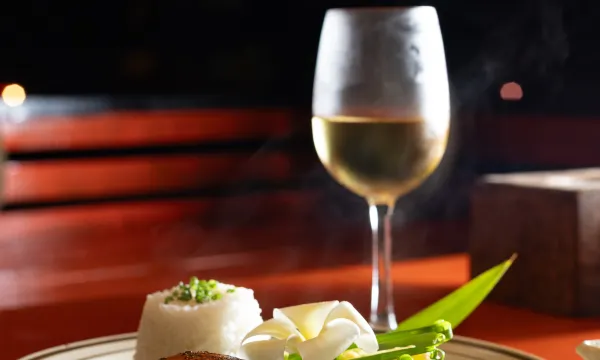 Der serveres et udvalg af cambodjanske og vestlige retter i restauranten. Man kan nyde vin og lokale øl i baren.