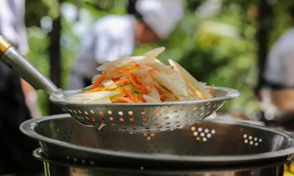 Amazing, freshly prepared food, so tasty. Big breakfast choice of variety of foods, lunch/supper menu: we had the vegetarian amok stew and the fish/chips. The stew was so delicious. The rooms/accommodation/outside areas are done in a Khmer style but are stylish and clean. The staff are so accommodating and friendly. Such a beautiful place.