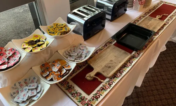 A bit noisy during the night. Something loud rattling now and then which may have been pipes. Doors slamming (more than likely guests coming in very late with no regard fir other guests).