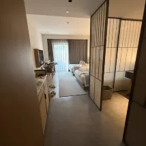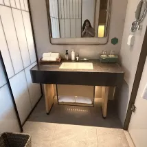 It was a lovely setting, 45 minutes or so from the train station by taxi, which suited us as we wanted to stay in the hot spring area. The hotel was modern, quite new, but just showing subtle signs of aging in that bathroom, but still very clean. The room view was green, although just a hill! . Evening food was available and all staff were very helpful, but there didnt appear to be a relaxing area to have a drink after the meal and be a little more social, however maybe that just wasn't the intended vibe of the hotel.