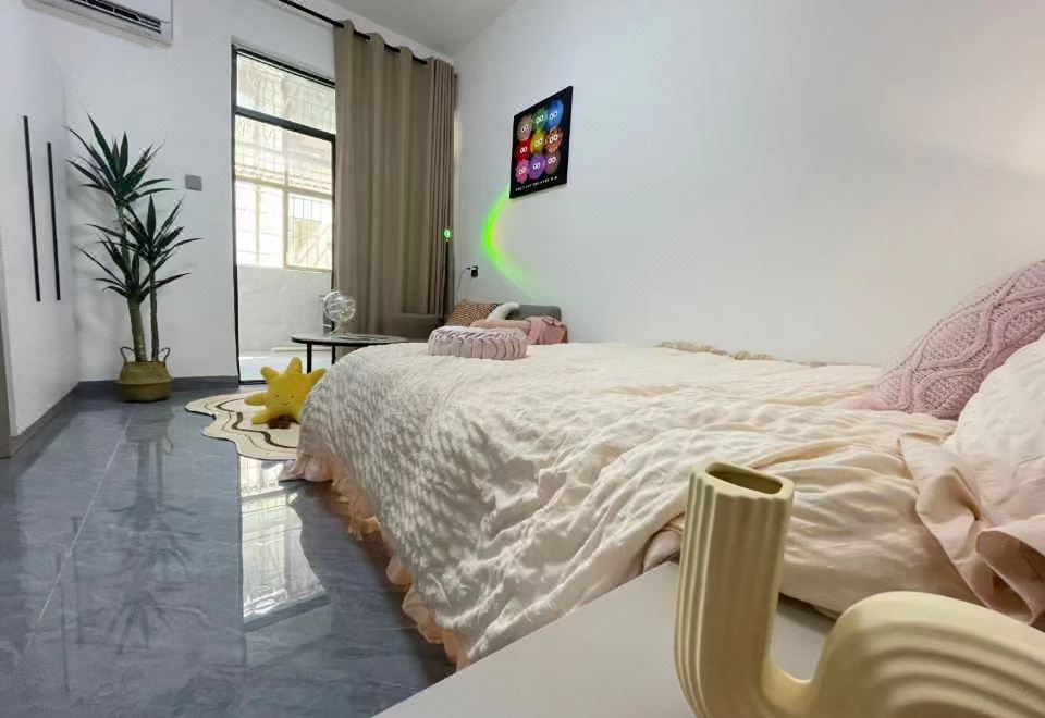 房間挺乾淨,如果有電視機就更好了,衞生間淋浴頭水壓超級大,要小心,哈哈哈哈哈,房間周圍應該都是租户,挺安靜的,一覺睡到11點